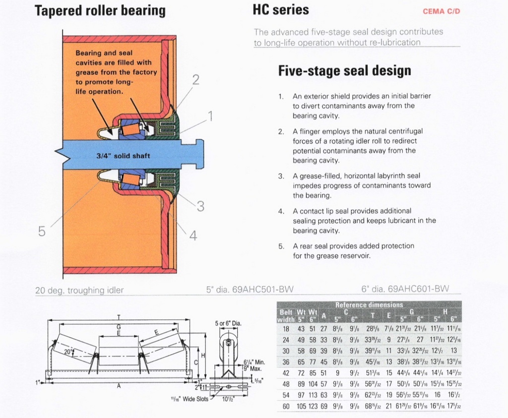 Continental HC series 20 deg. Troughing Idler 5" Can 36" Belt width 69AHC501-36 CEMA-C