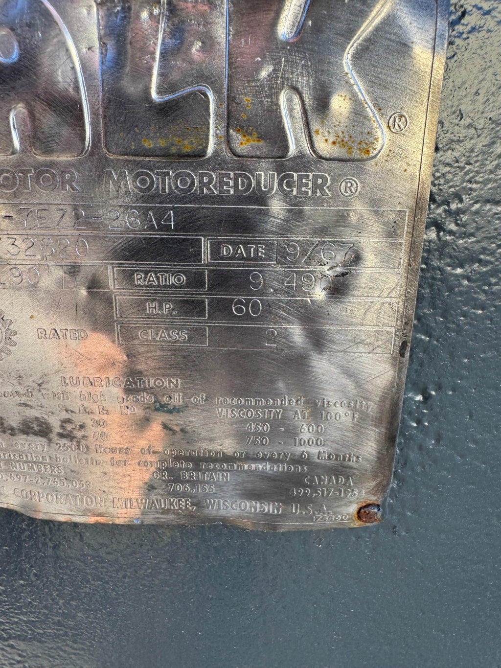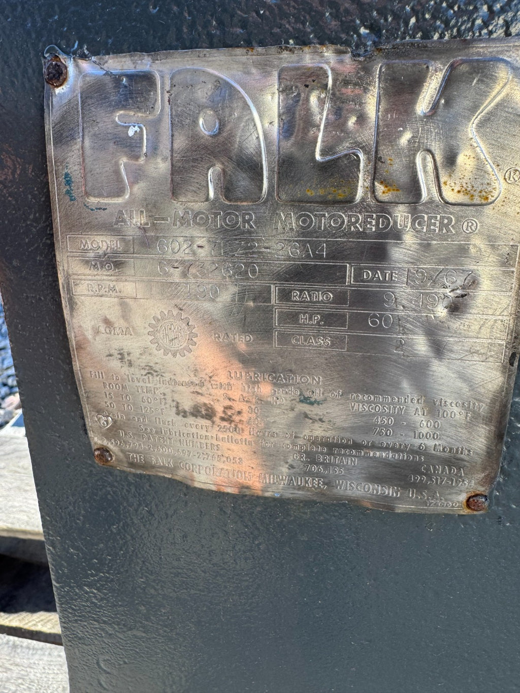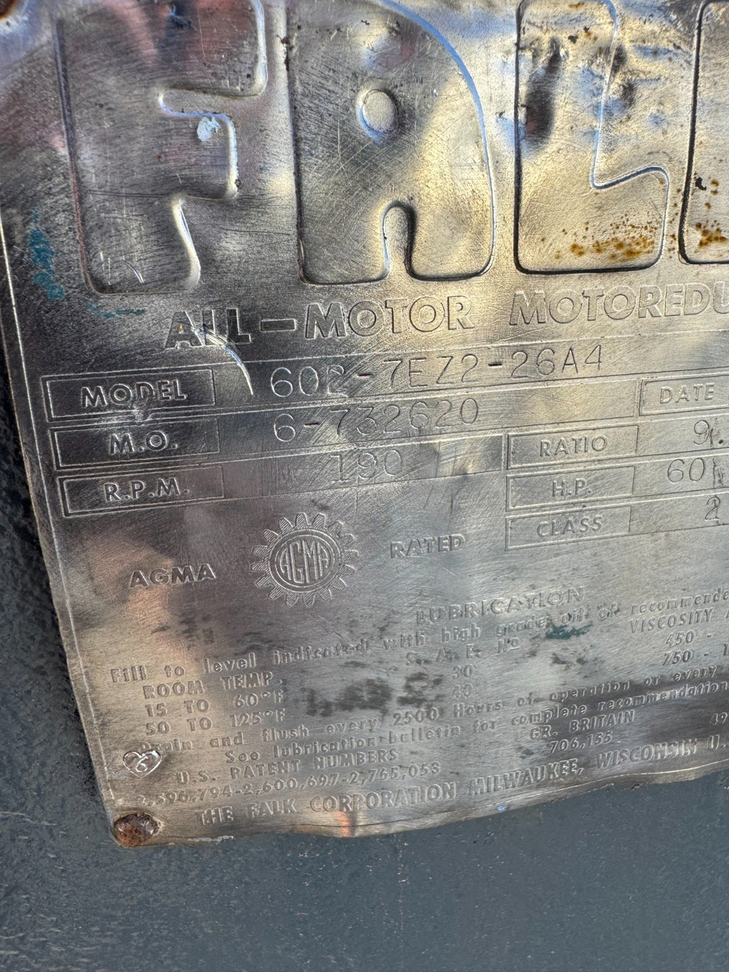 FALK 7EZ2 MOTOREDUCER ENCLOSED GEAR DRIVE SPEED REDUCER 9.490 RATIO 7EZ2-26A4