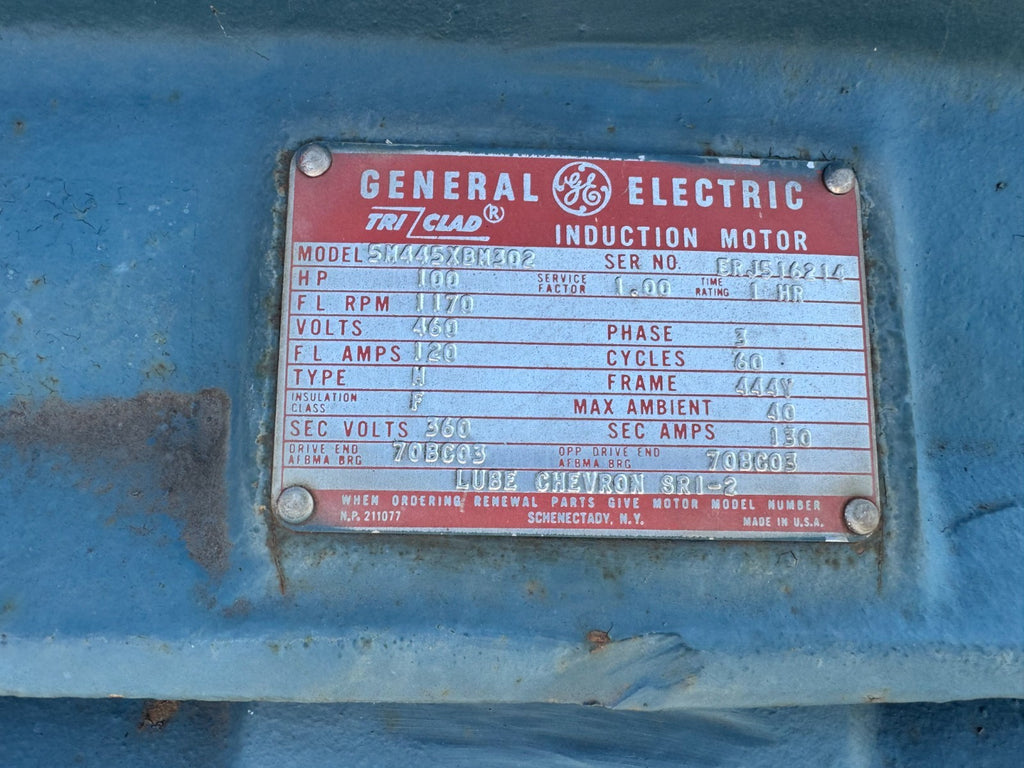 GENERAL ELECTRIC 100HP 1170RPM INDUCTION MOTOR 444Y FRAME 460V. 5M445XBM302
