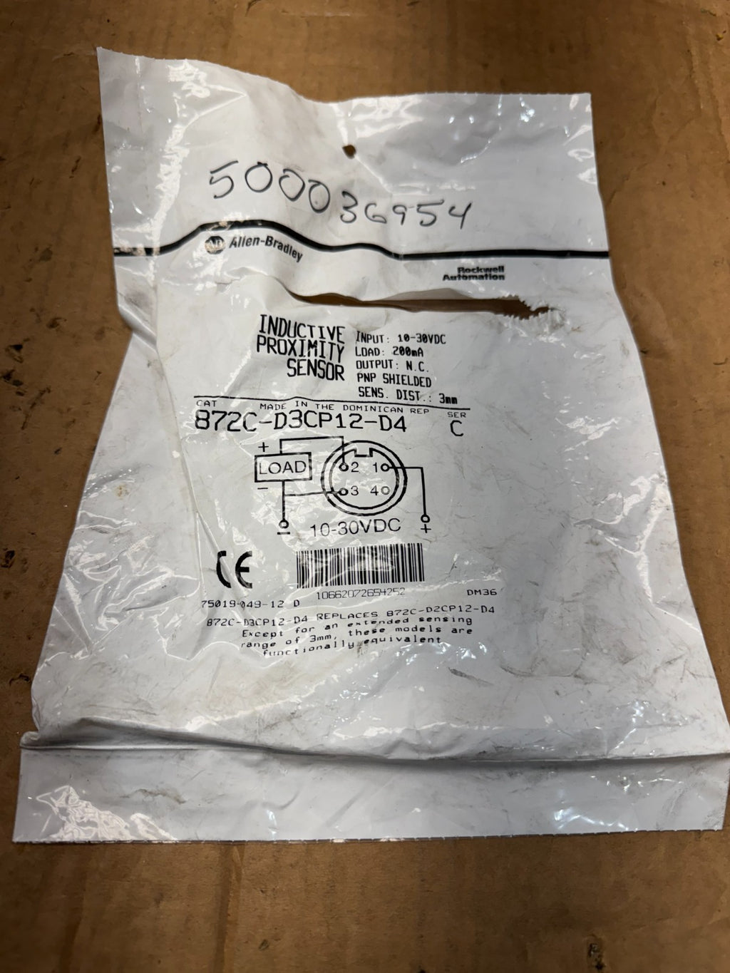 NEW ALLEN-BRADLEY INDUCTIVE PROXIMITY SENSOR 872C-D3CP12-D4 SERIES C