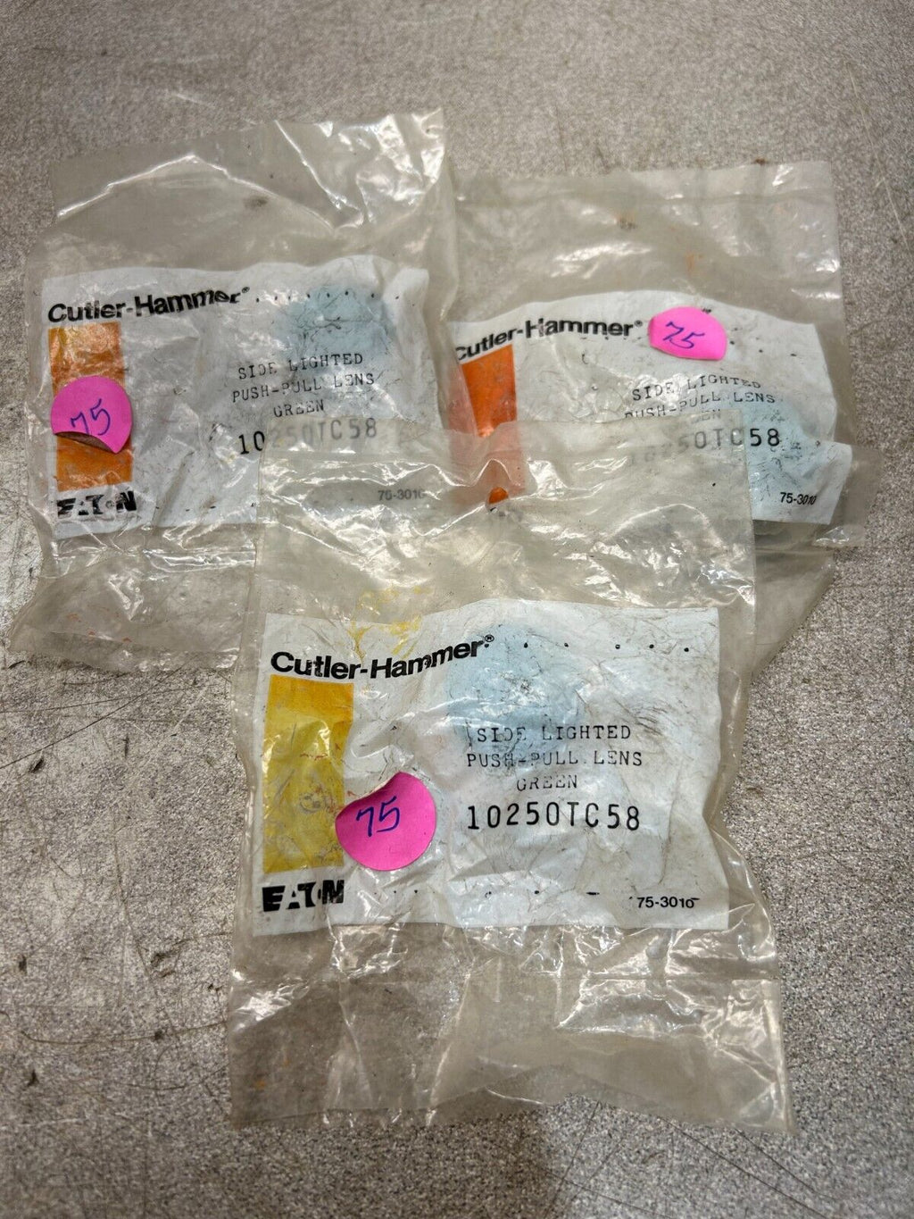 NEW IN BAG LOT OF 3 CUTLER HAMMER PUSH-PULL LENS GREEN 10250TC58