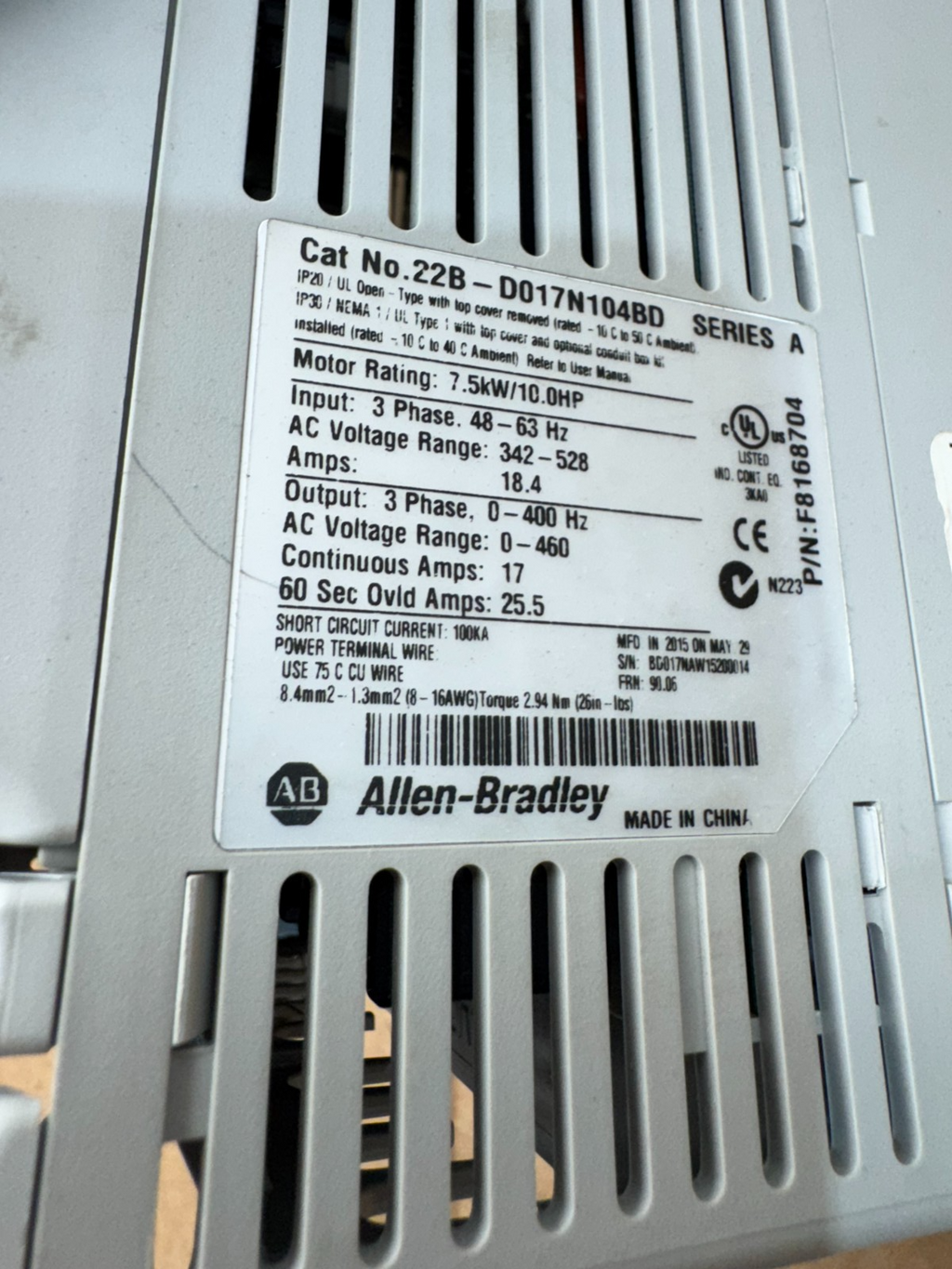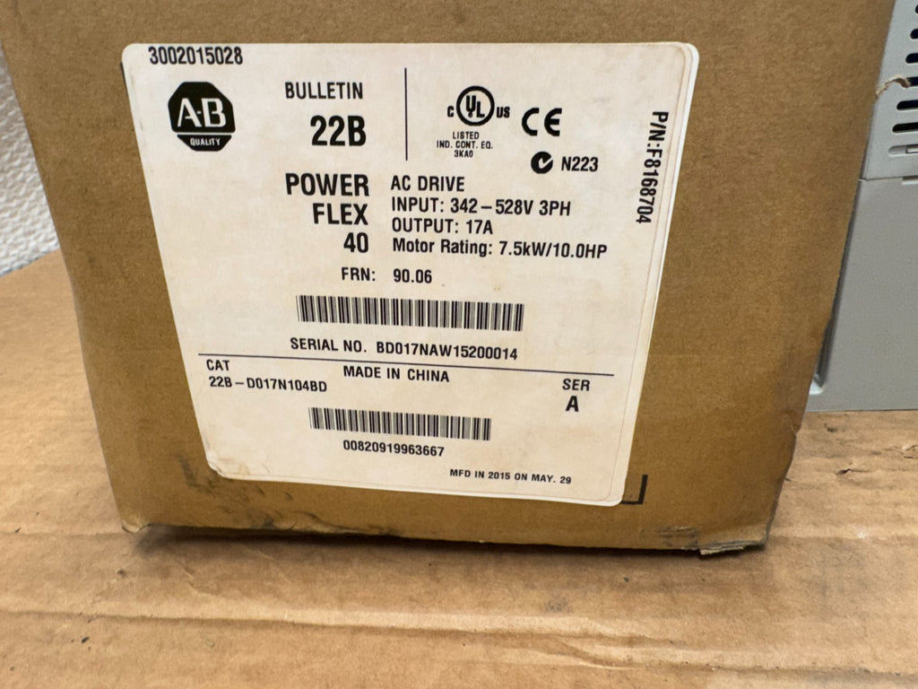 NEW IN BOX ALLEN-BRADLEY 10HP POWERFLEX 40 DRIVE 22B-D017N104BD SERIES A