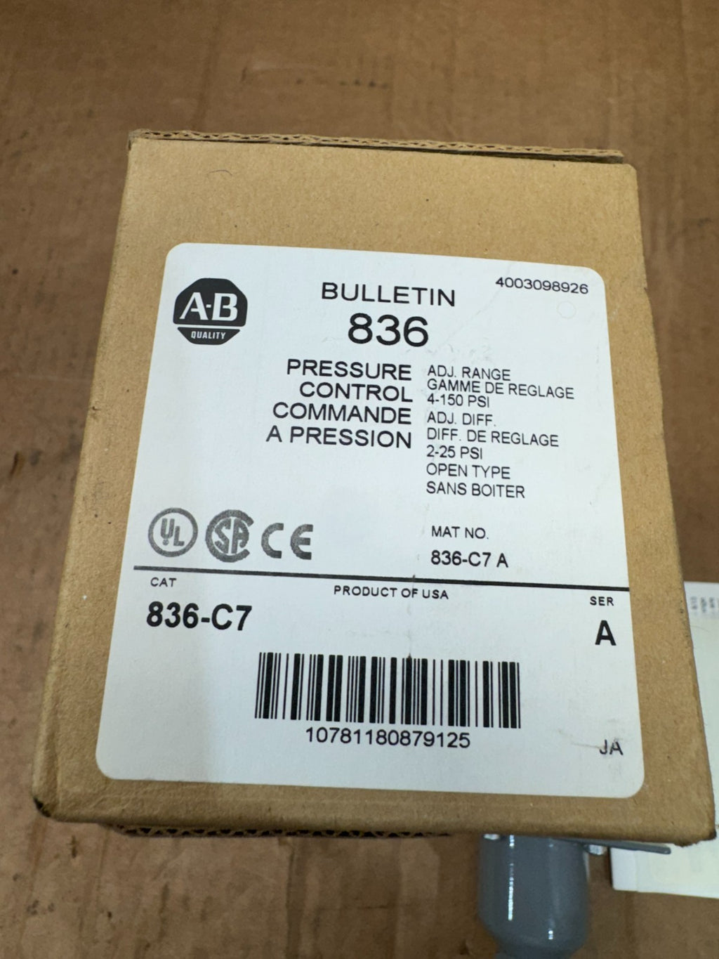 NEW IN BOX ALLEN-BRADLEY PRESSURE CONTROL SWITCH 836-C7 SERIES A
