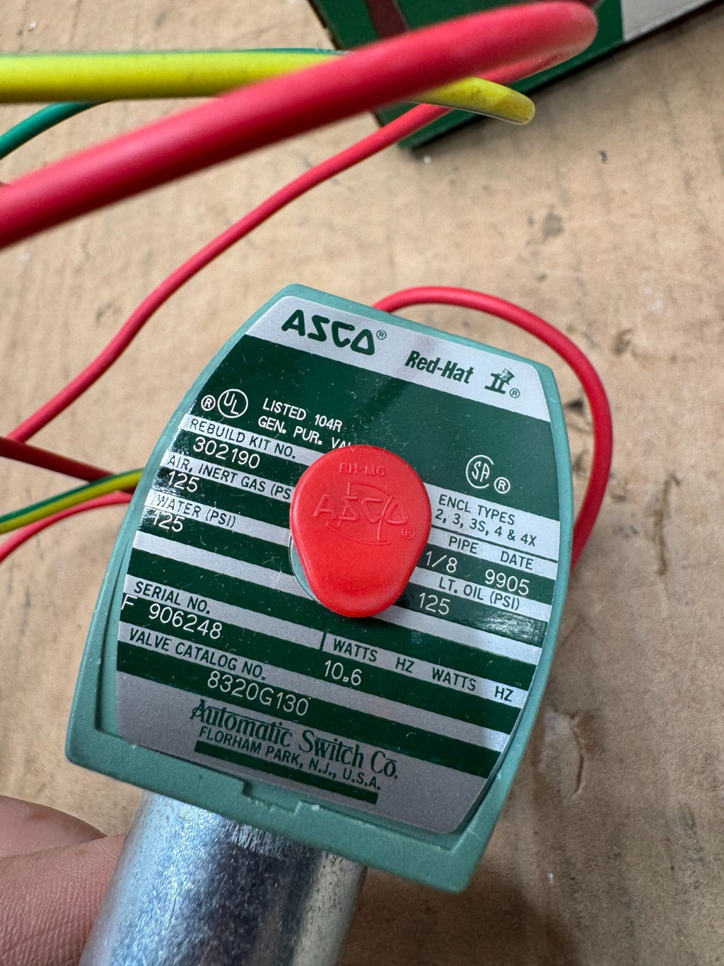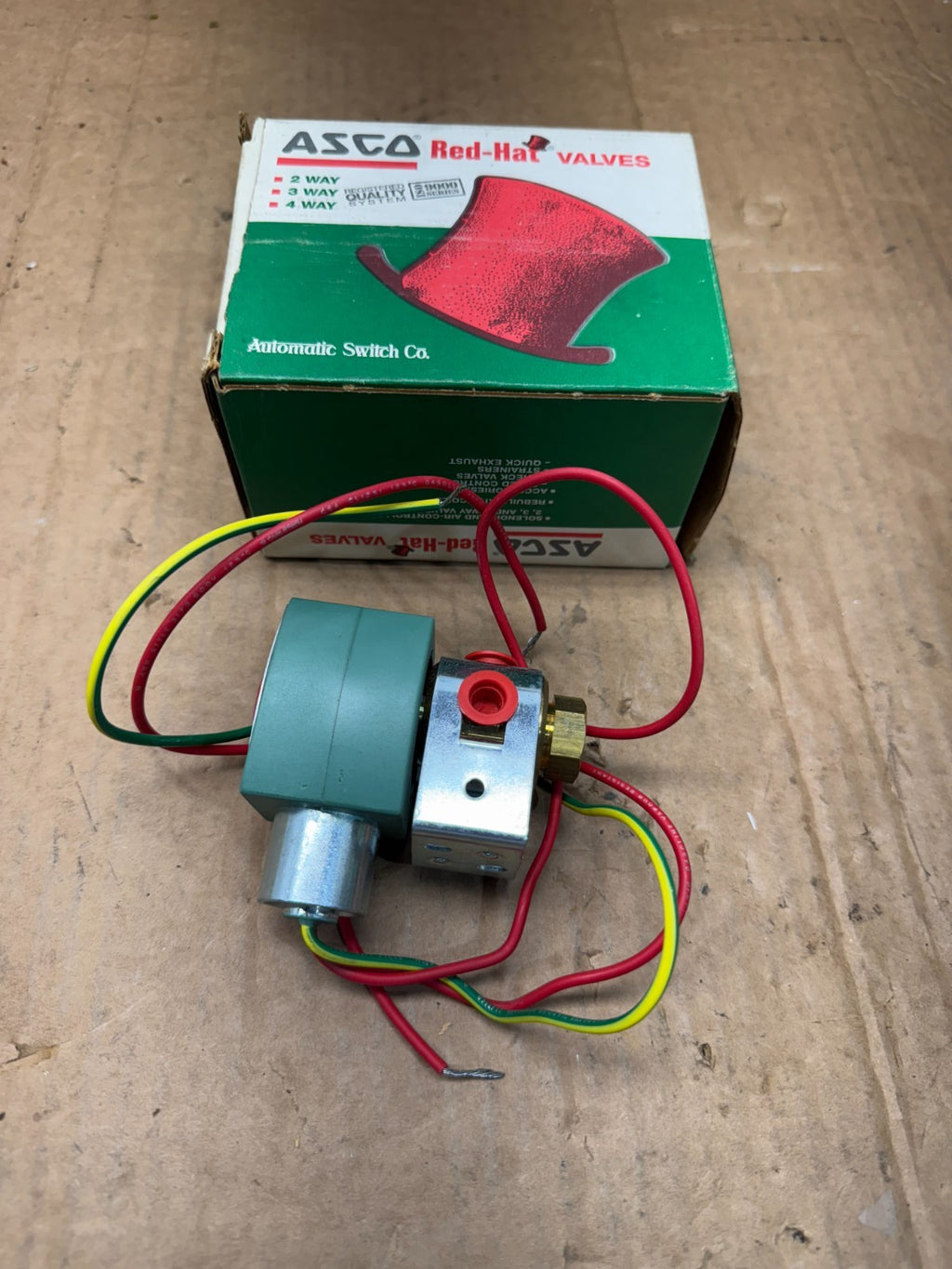 NEW IN BOX ASCO RED HAT SOLENOID VALVE 24VDC. 1/8" PIPE 8320G130