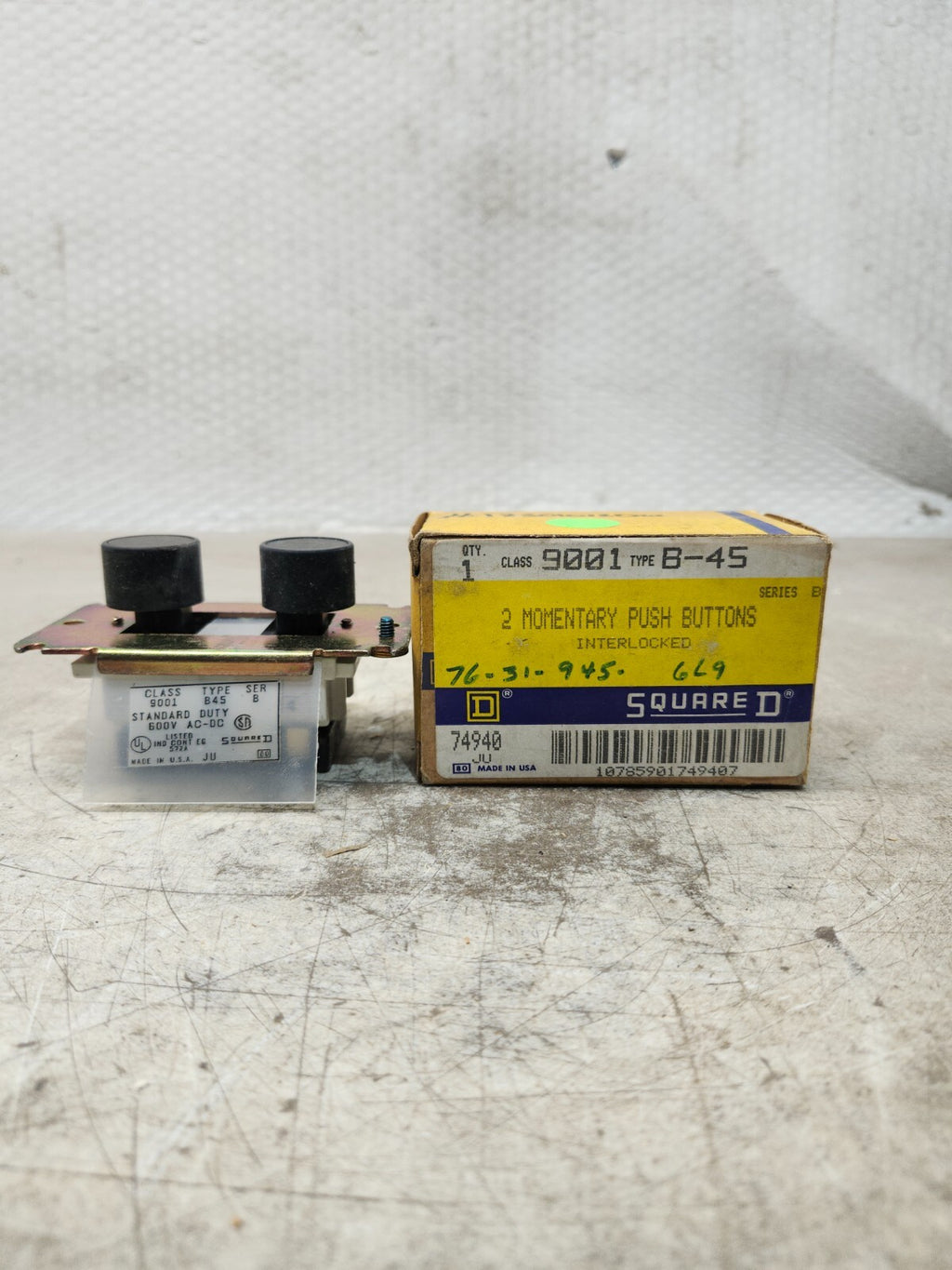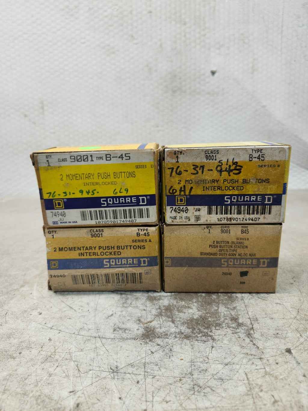 NEW IN BOX LOT OF 4 SQUARE D 2 MOMENTARY PUSH BUTTONS INTERLOCKED TYPE B-45