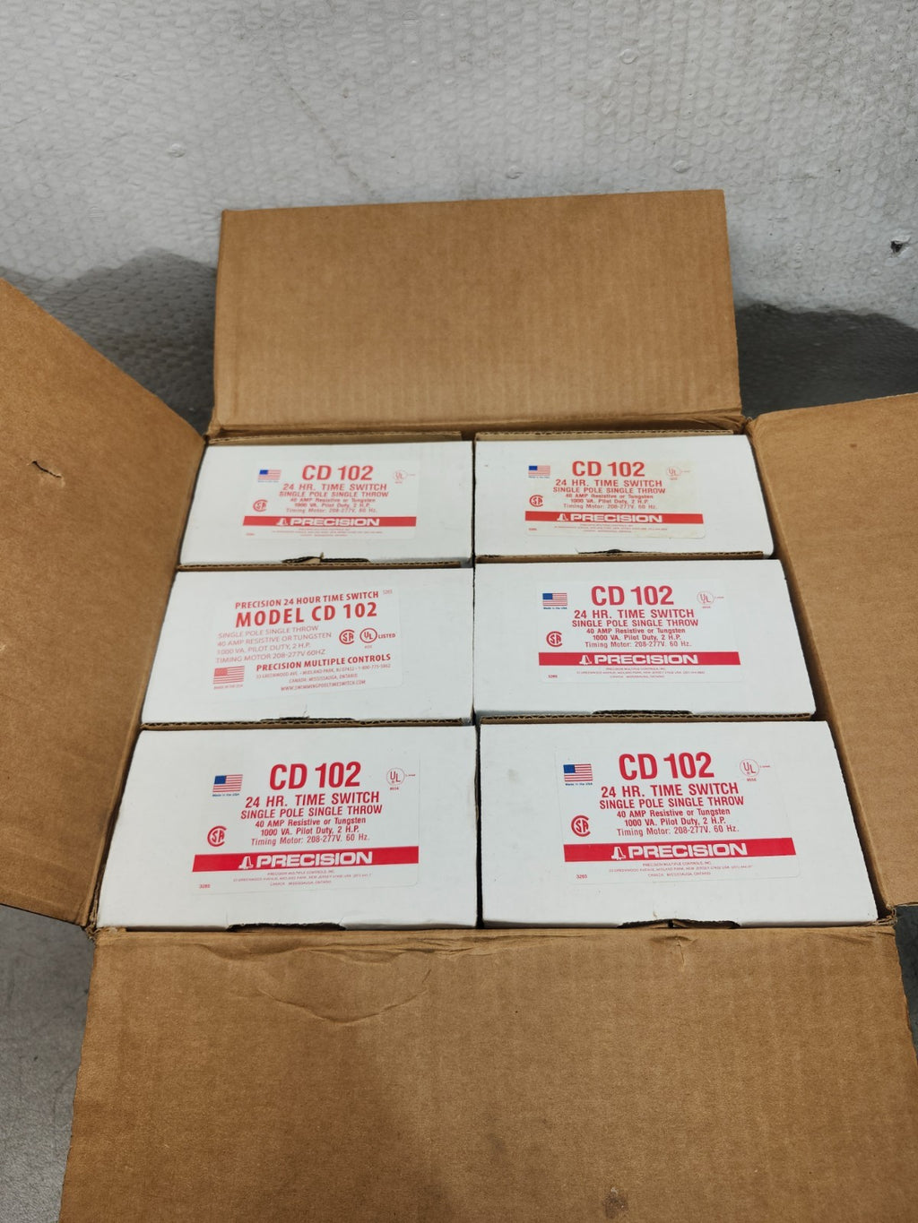 NEW IN BOX LOT OF 6 PRECISION TIME SWITCH SINGLE POLE SINGLE THR0W CD 102