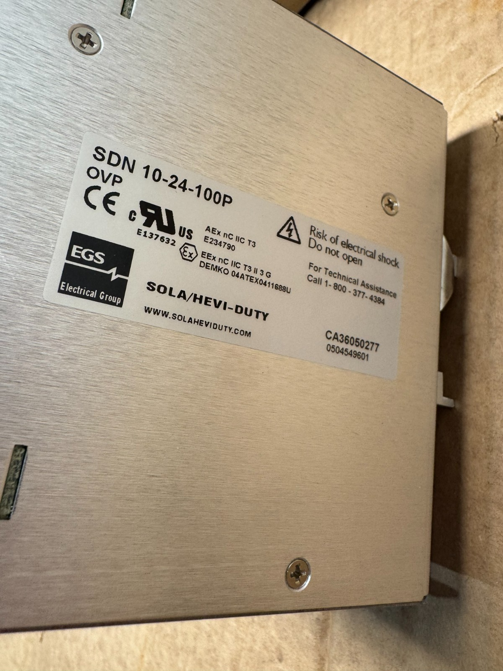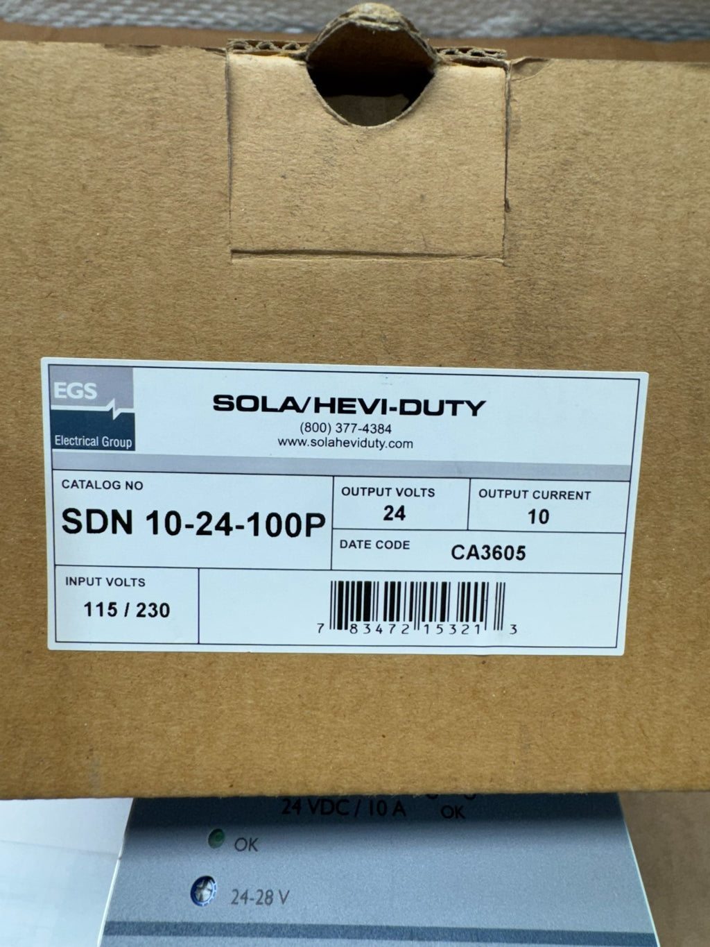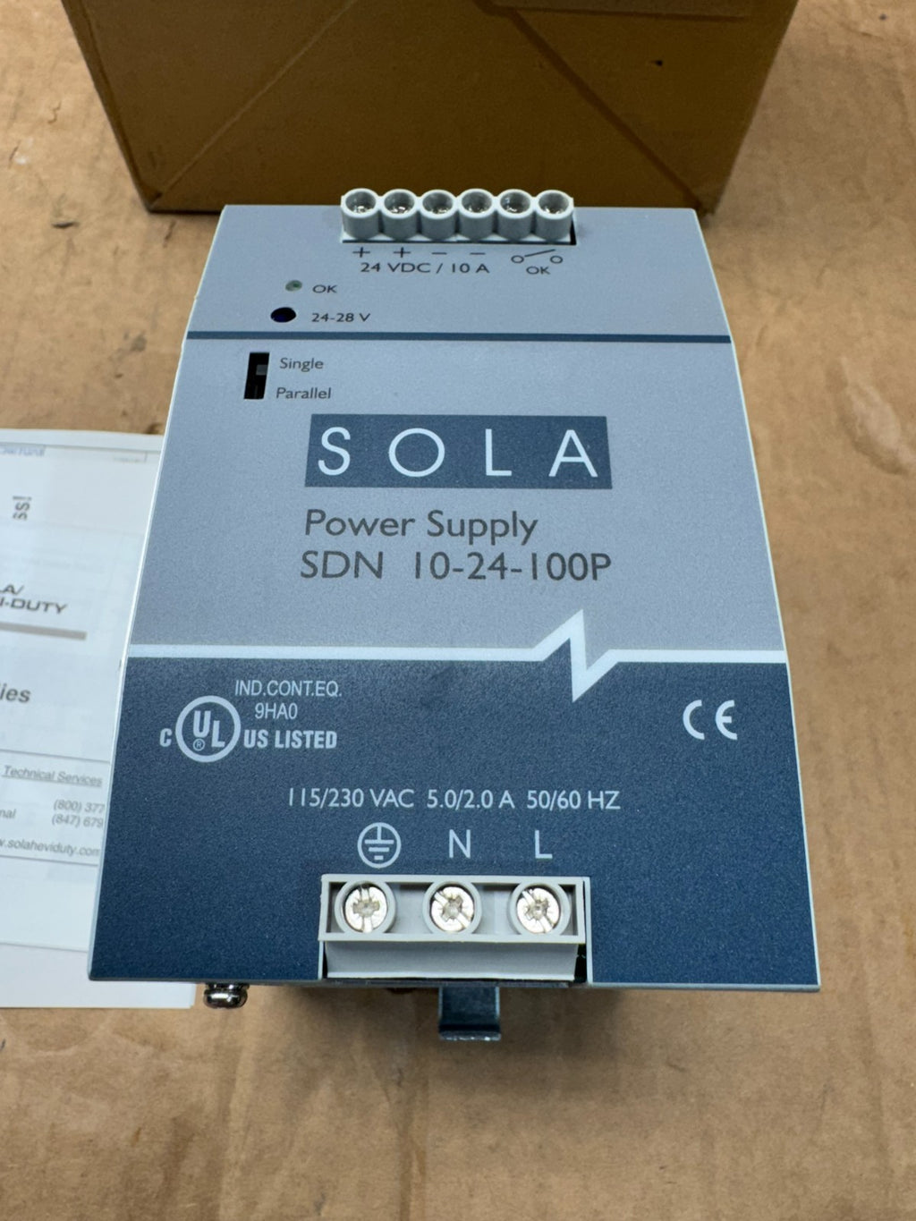 NEW IN BOX SOLA 24VDC. POWER SUPPLY SDN 10-24-100P