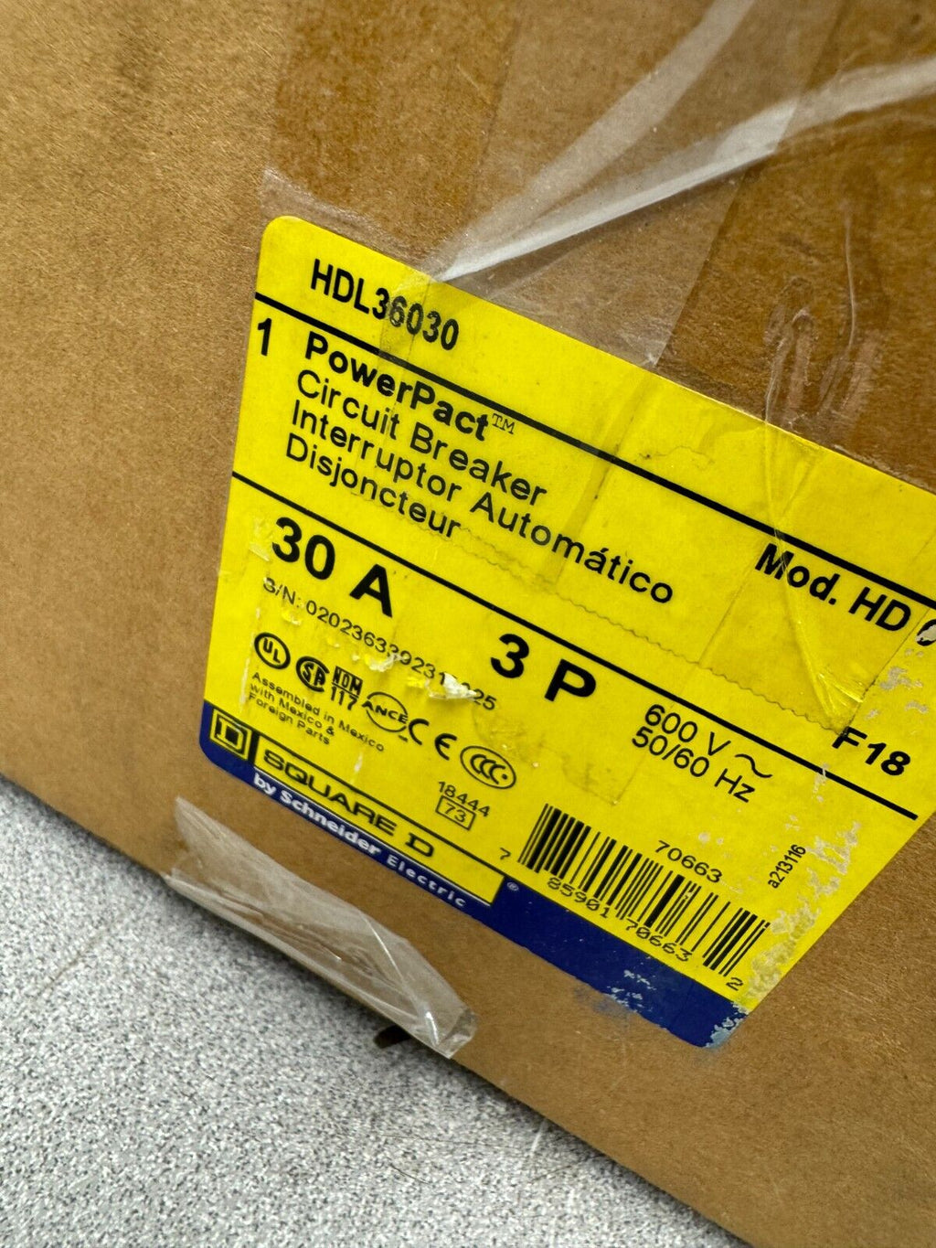NEW IN BOX SQUARE D HD060 POWERPACT 3 POLE 30AMP CIRCUIT BREAKER HDL36030