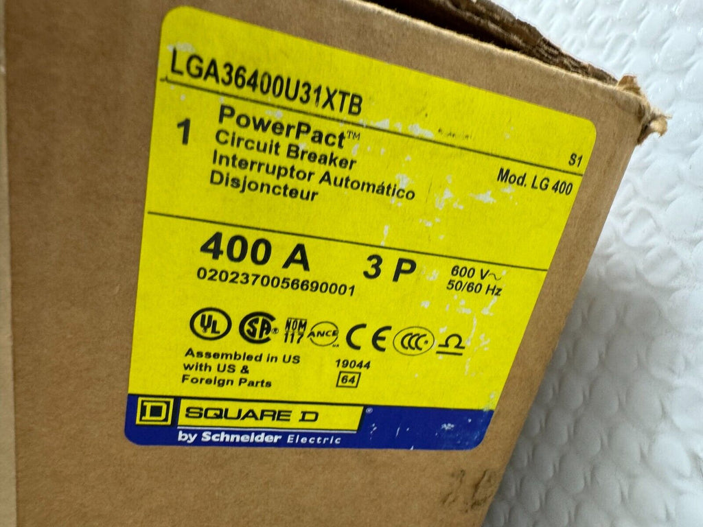 NEW IN BOX SQUARE D LD400 POWERPACT 3 POLE 400AMP CIRCUIT BREAKER LDA36400U31XTB