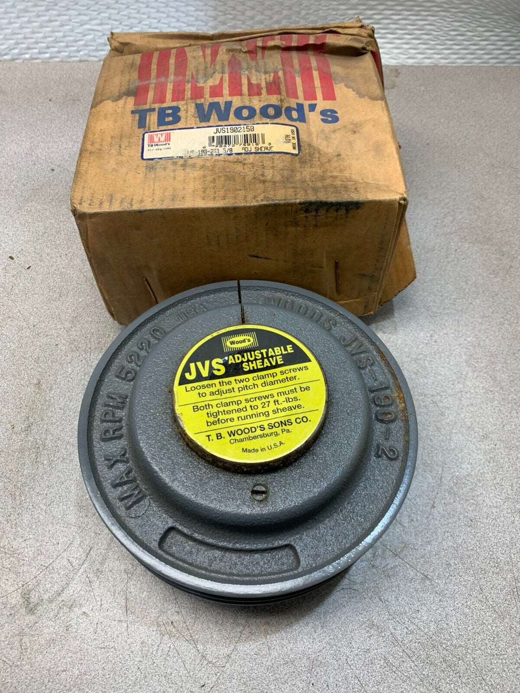 NEW IN BOX TB WOODS JVS1902158 JVS-190-2X1 5/8 ADJ SHEAVE