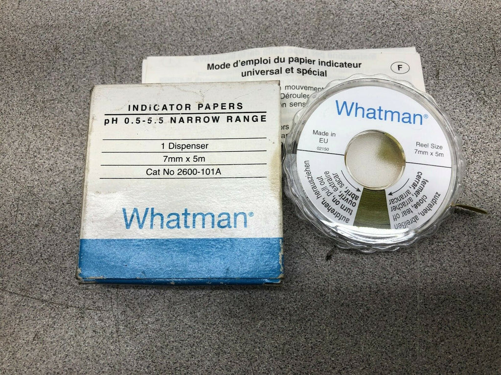 NEW IN BOX WHATMAN NARROW RANGE PH INDICATOR PAPER 7MMX 5M 0.5-5.5 RANGE 2600-101A