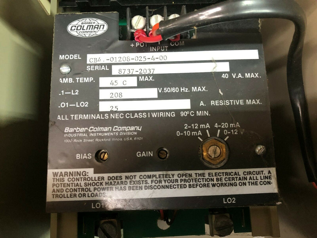 NEW NO BOX BARBER COLMAN 25 AMP 208 VAC SOLID STATE CONTROLER IN ENCLOSURE CB41-01208-025-4-00