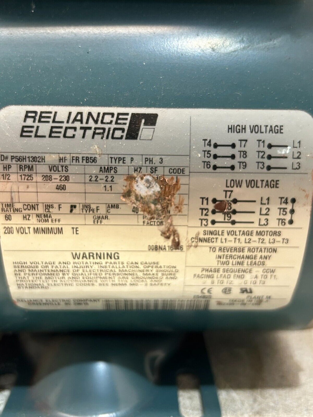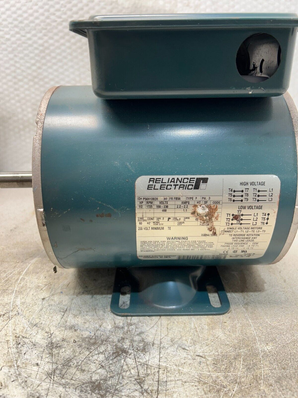 NEW NO BOX Reliance Electric HP 1/2, 1725RPM, 208-230/460, PH 3, 60HZ, P56H1302H