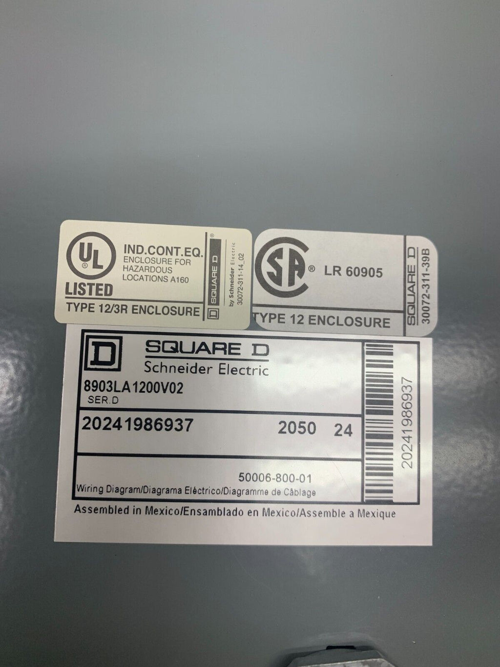 NEW NO BOX SQUARE D LIGHTING CONTACTOR WITH ENCLOSURE 8903LA1200V02 SERIES D