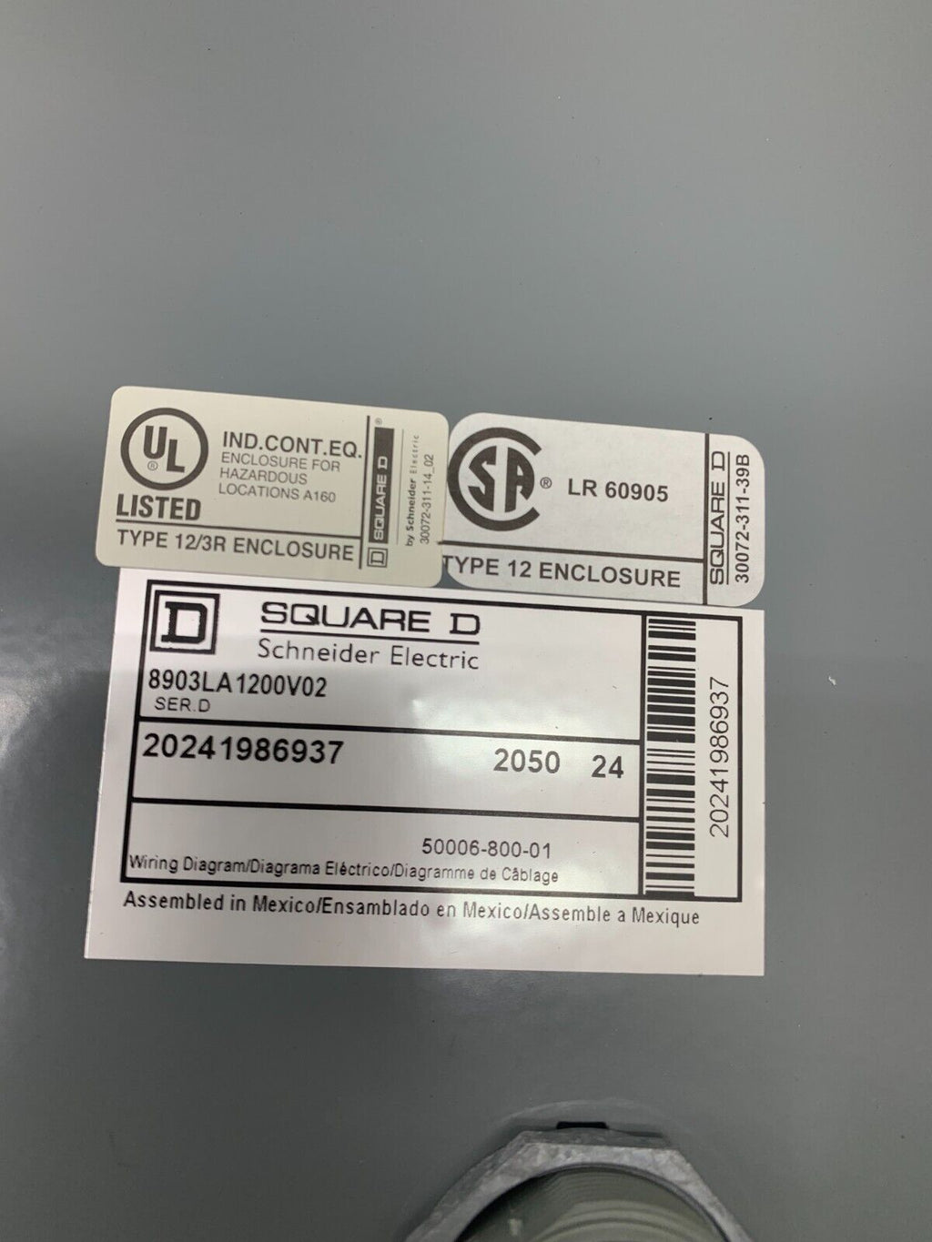 NEW NO BOX SQUARE D LIGHTING CONTACTOR WITH ENCLOSURE 8903LA1200V02 SERIES D