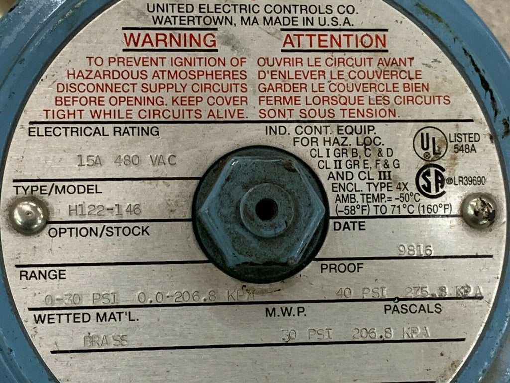 NEW NO BOX UNITED ELECTRIC PRESSURE SWITCH H122-146