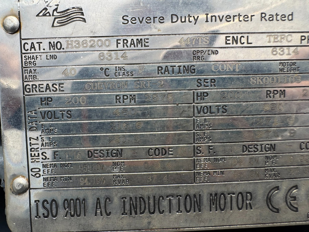 REBUILT WESTINGHOUSE 125HP 3560RPM ELECTRIC MOTOR 460V. 444TS FRAME MODEL TAFC