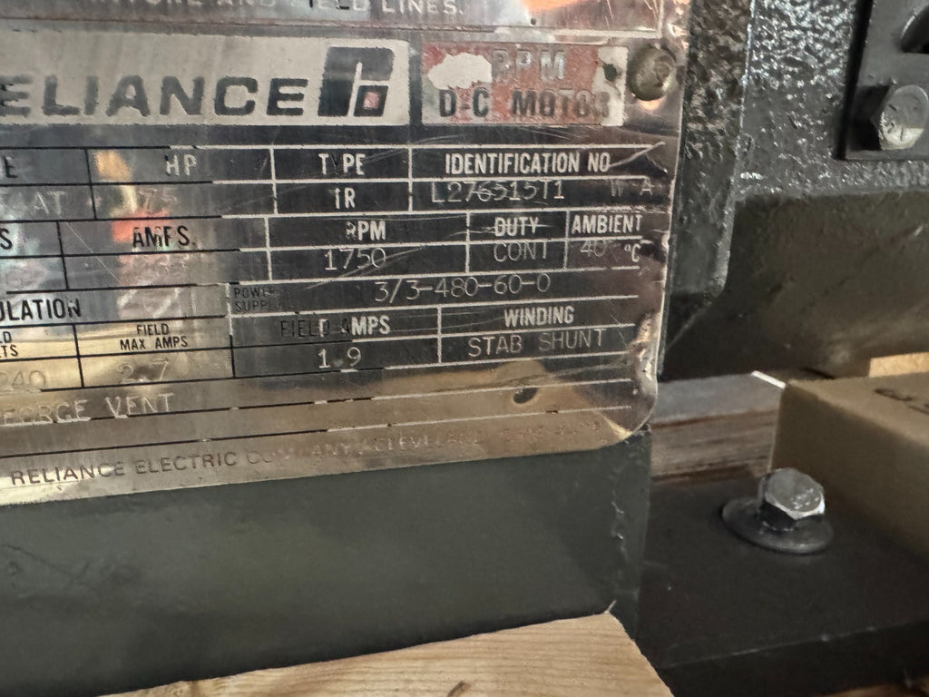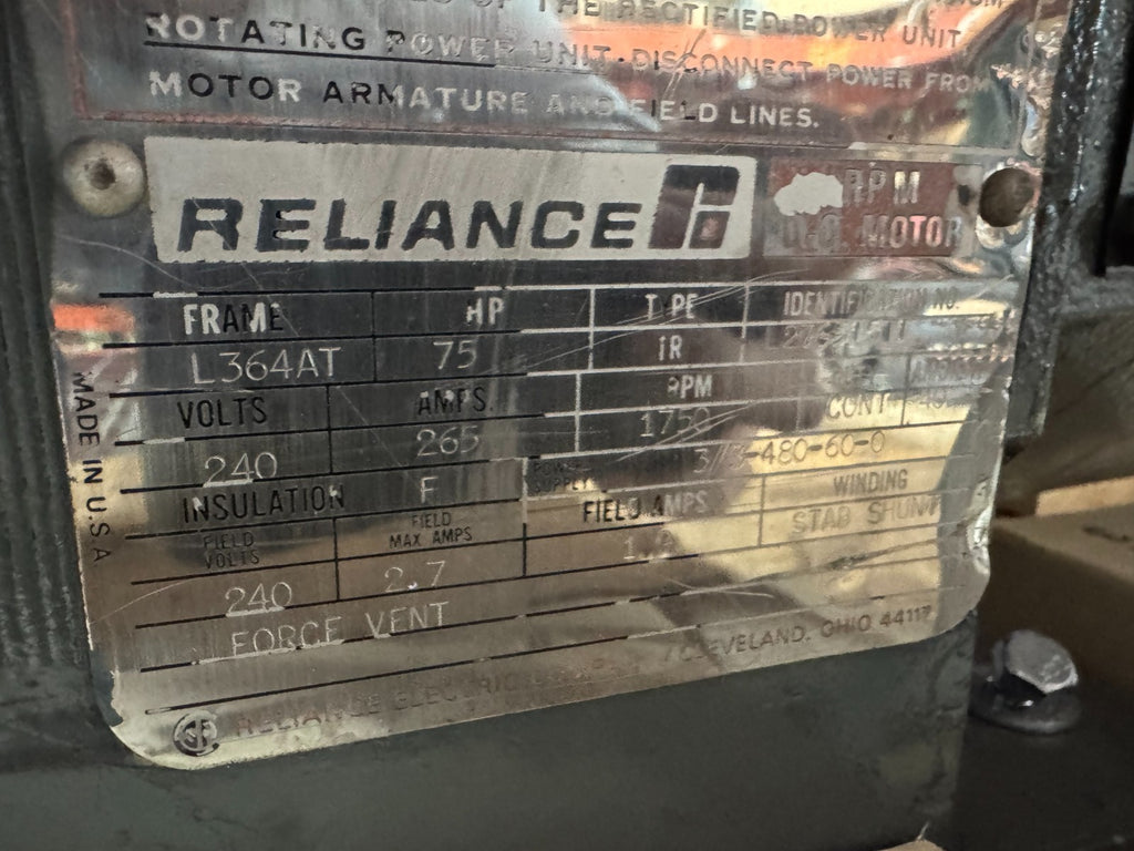 REBUILT RELIANCE DC 75HP 240VDC. ELECTRIC MOTOR 1750RPM L364AT FRAME L276515T1