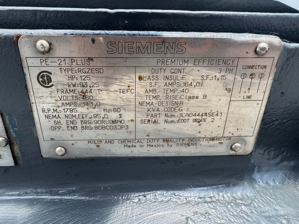 REBUILT SIEMENS 125HP 444T FRAME ELECTRIC MOTOR 460V. 1785RPM TYPE RGZESD