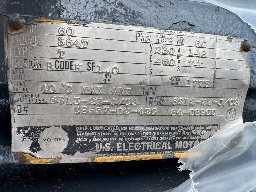 REBUILT US MOTORS 60HP 1775RPM ELECTRIC MOTOR 230/460V. 364T FRAME C8557-02-429
