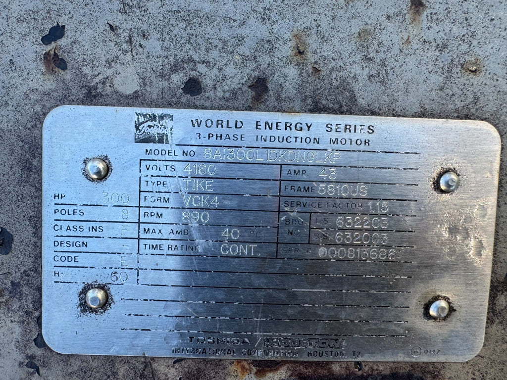 USED TOSHIBA 300HP 890RPM ELECTRIC MOTOR 5810US FRAME 4160V. TYPE TIKE FORM VCK4
