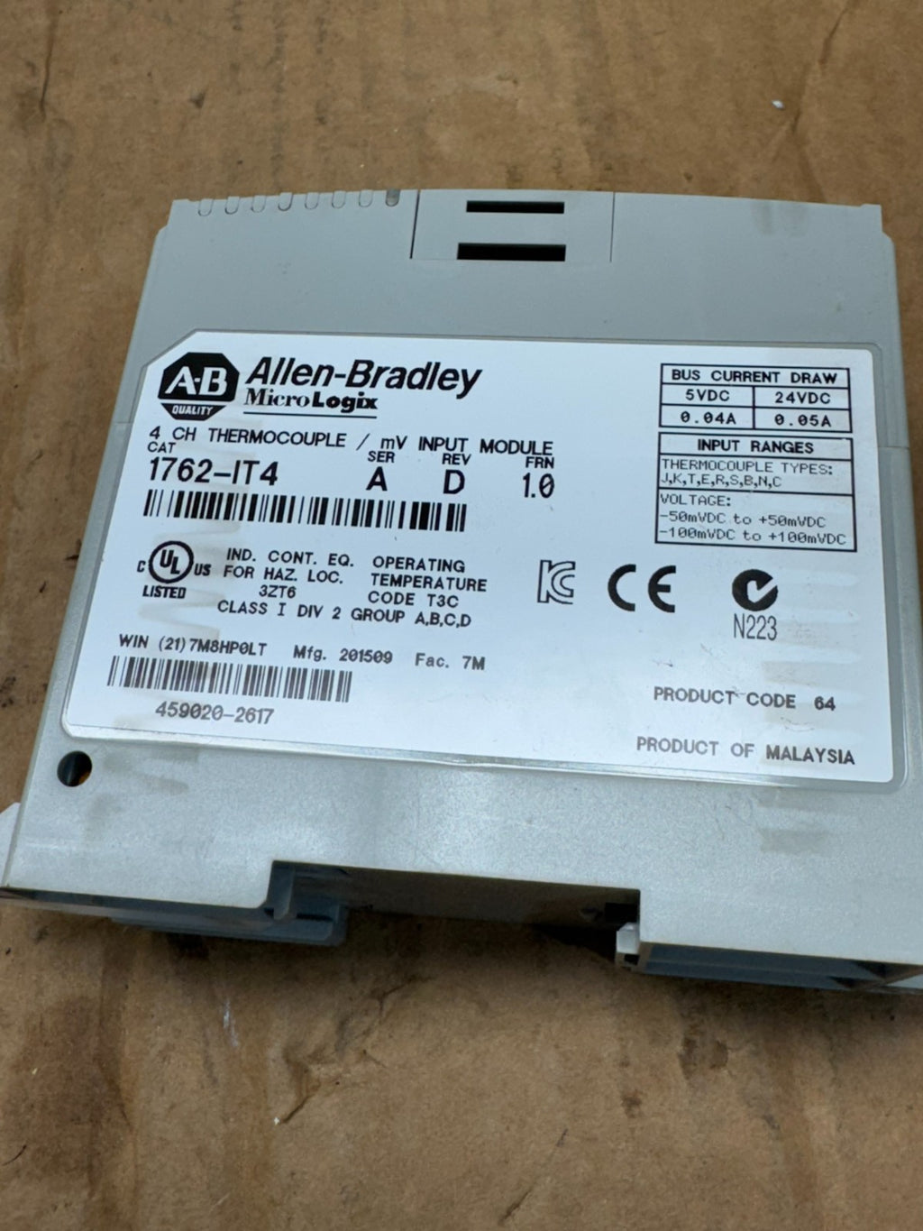 USED ALLEN-BRADLEY MICROLOGIX THERMOCOUPLE INPUT MODULE 1762-IT4 SERIES A