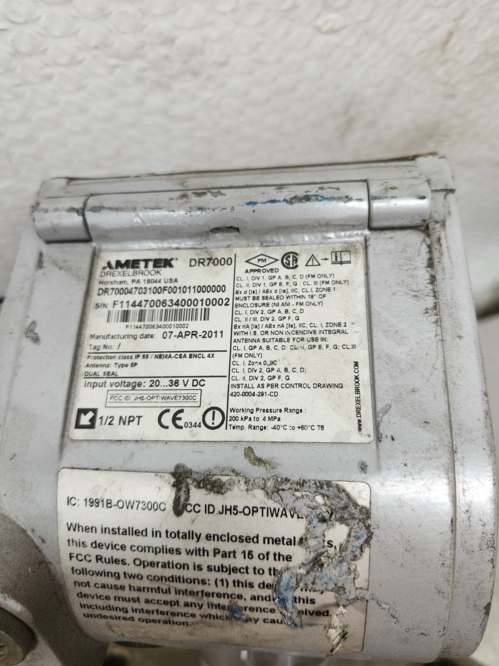 USED AMETEK DrexelBrook Radar Liquid Level Transmitter DR7000