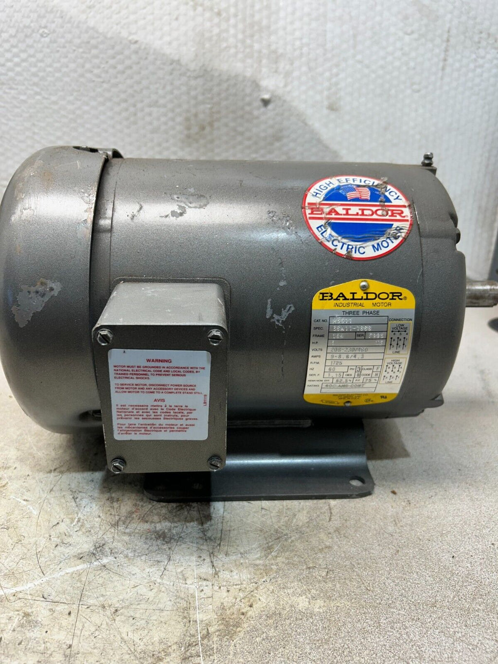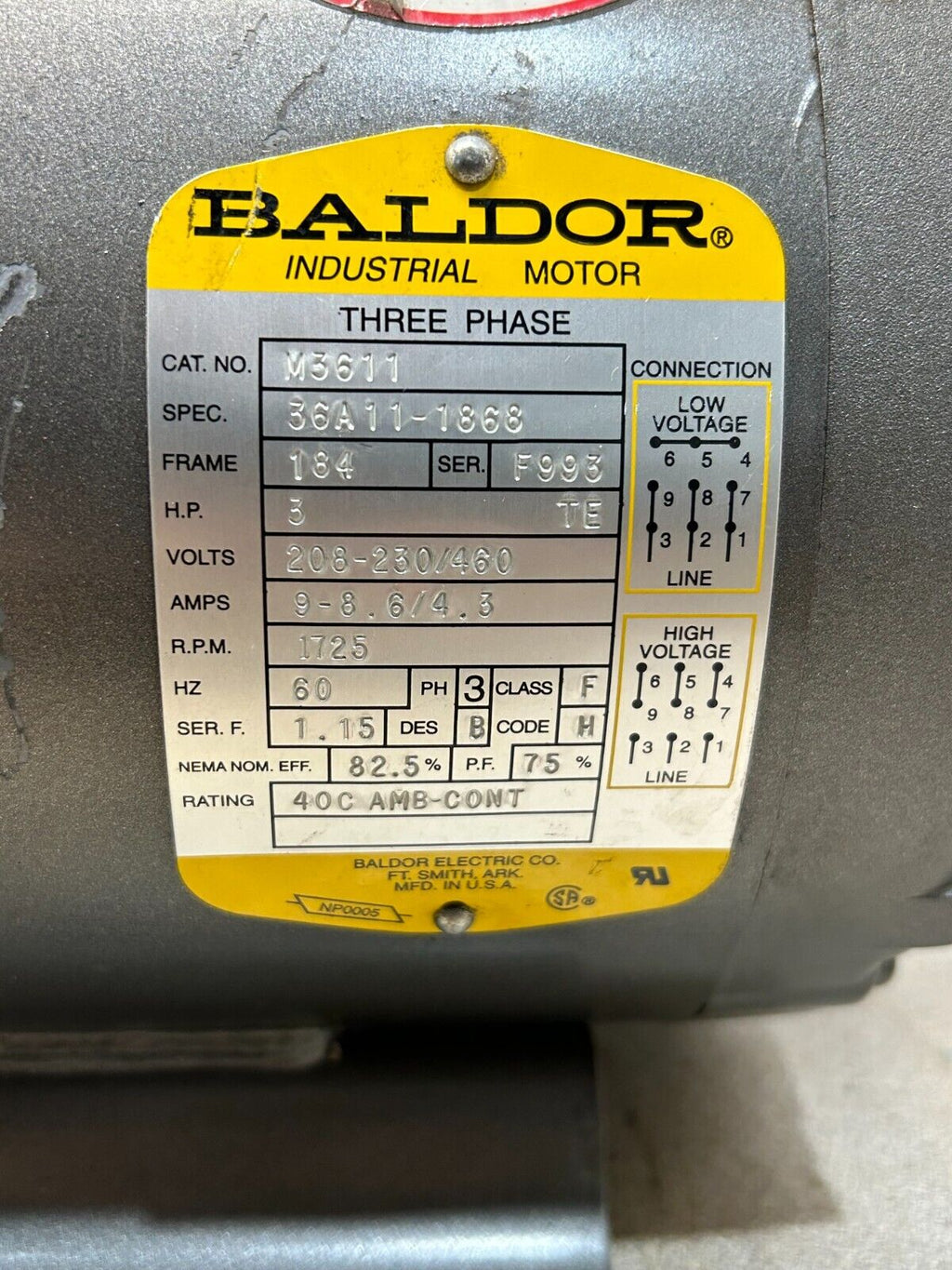 USED BALDOR MOTOR 3HP 1725RPM 3PH 60HZ M3611
