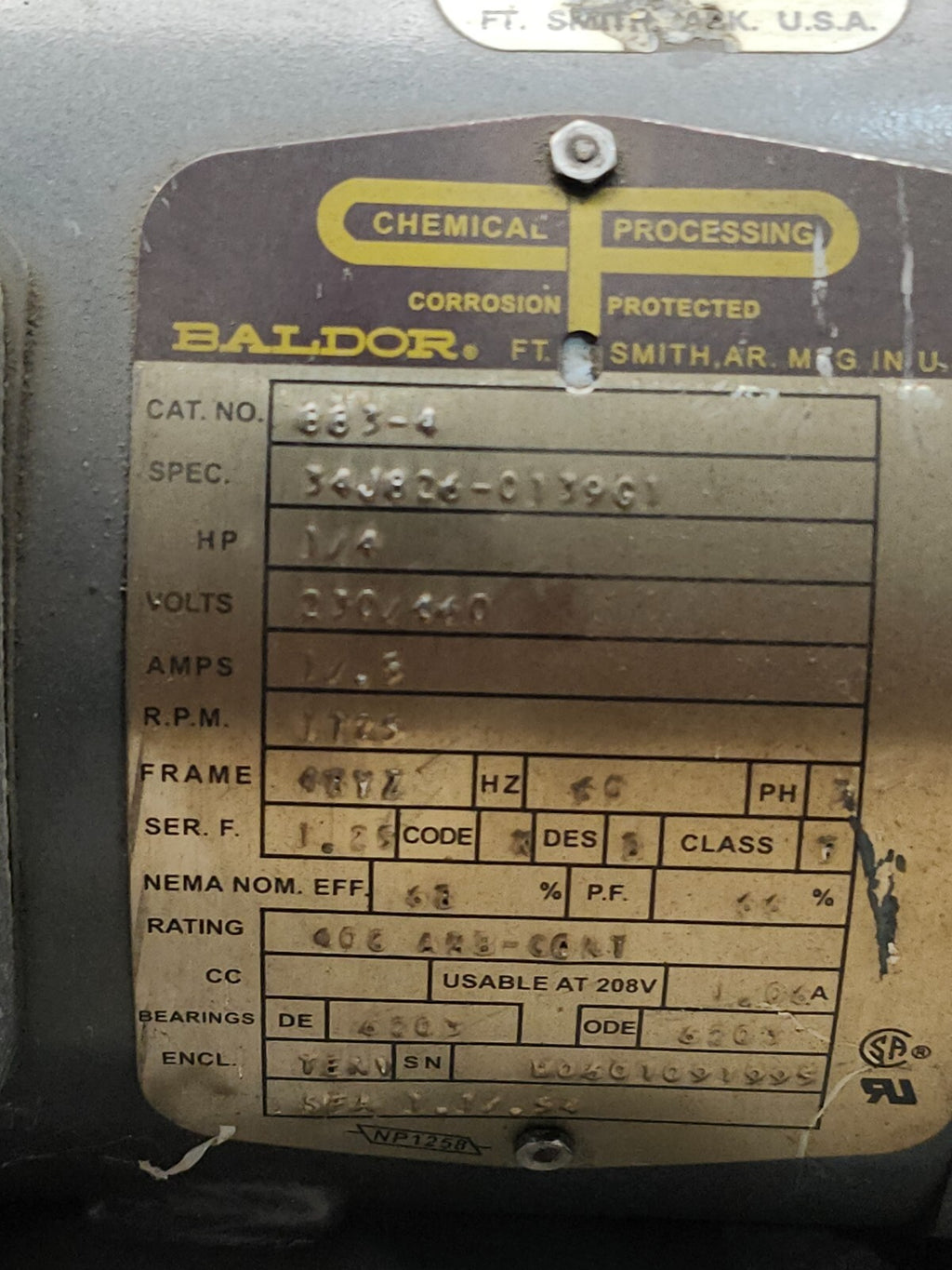 USED Baldor-Reliance Motor HP 1/4, 230/440V, 1725 RPM, 3PH, 883-4, 34J826-0139G1