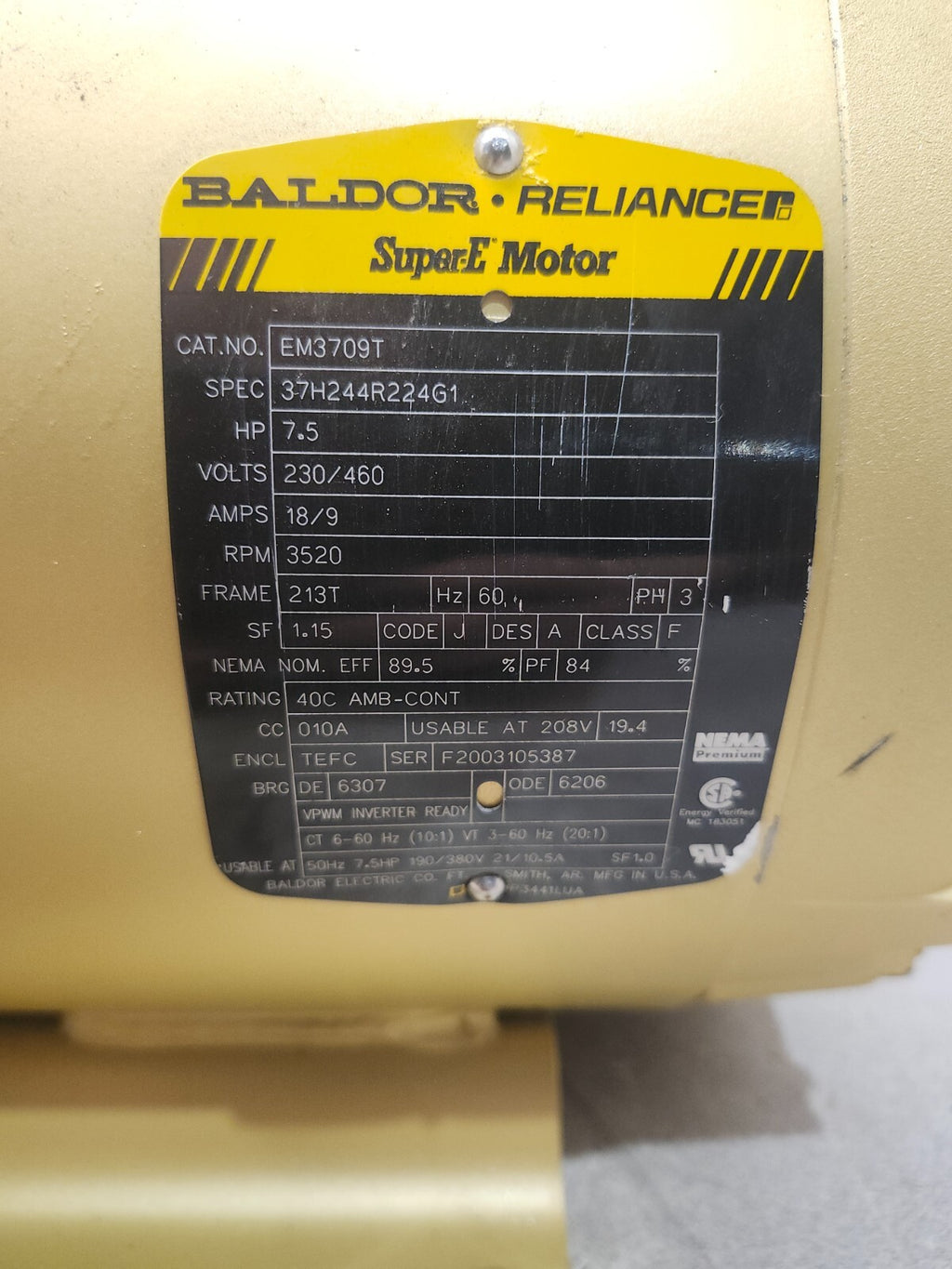USED BALDOR RELIANCE SUPER E MOTOR 7.5HP,3520RPM 3P, 60HZ, 230/460V EM3709T