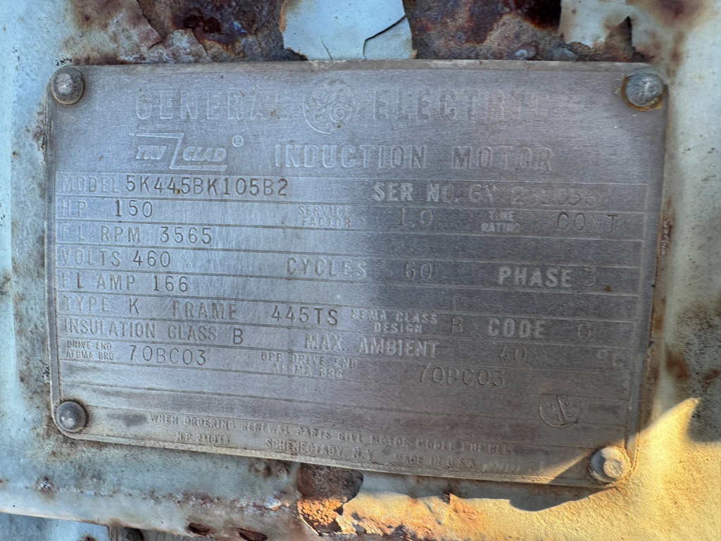 USED GENERAL ELECTRIC 150HP 3565RPM MOTOR 445TS FRAME 460V. 5K445BK105B2