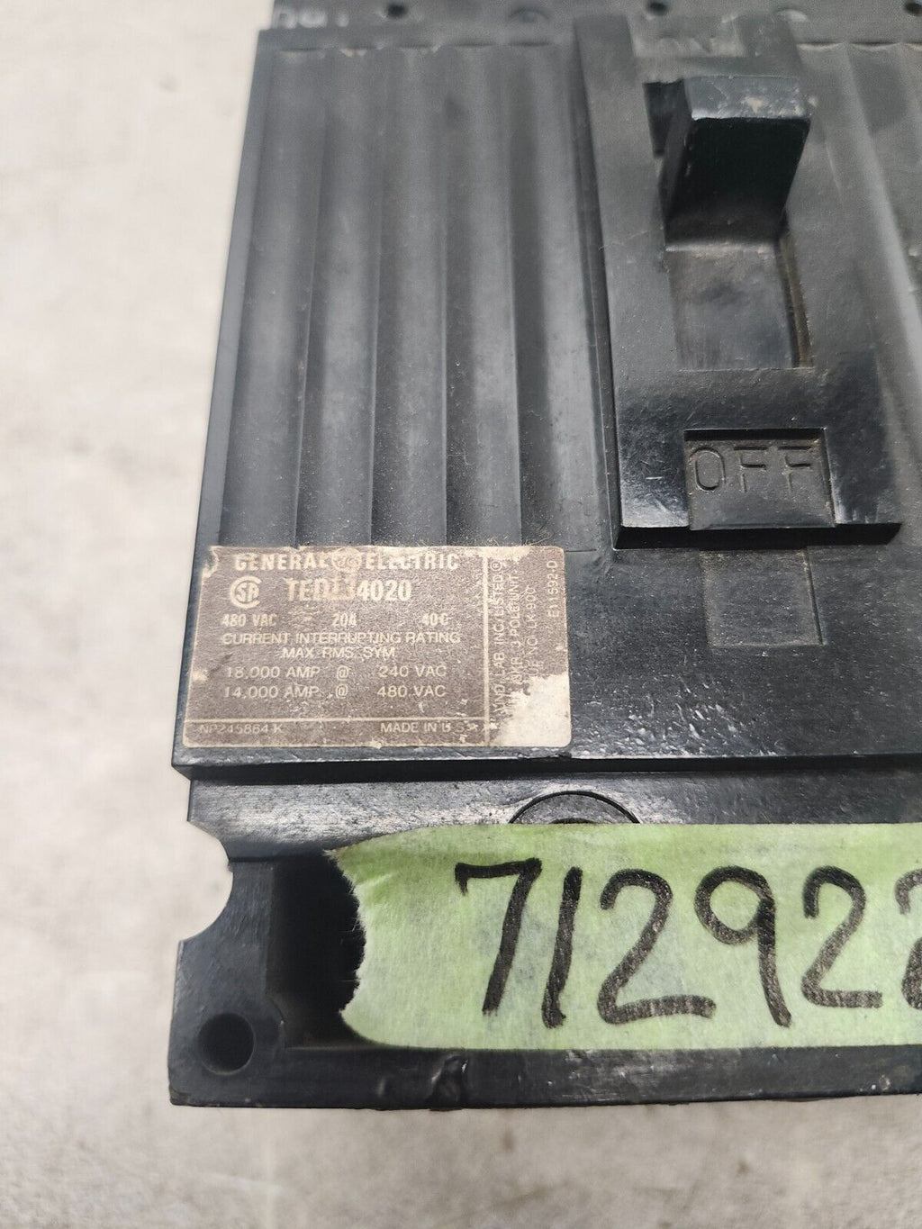USED GENERAL ELECTRIC CIRCUIT BREAKER 20 AMP 3-POLE 480 V TEDI34020