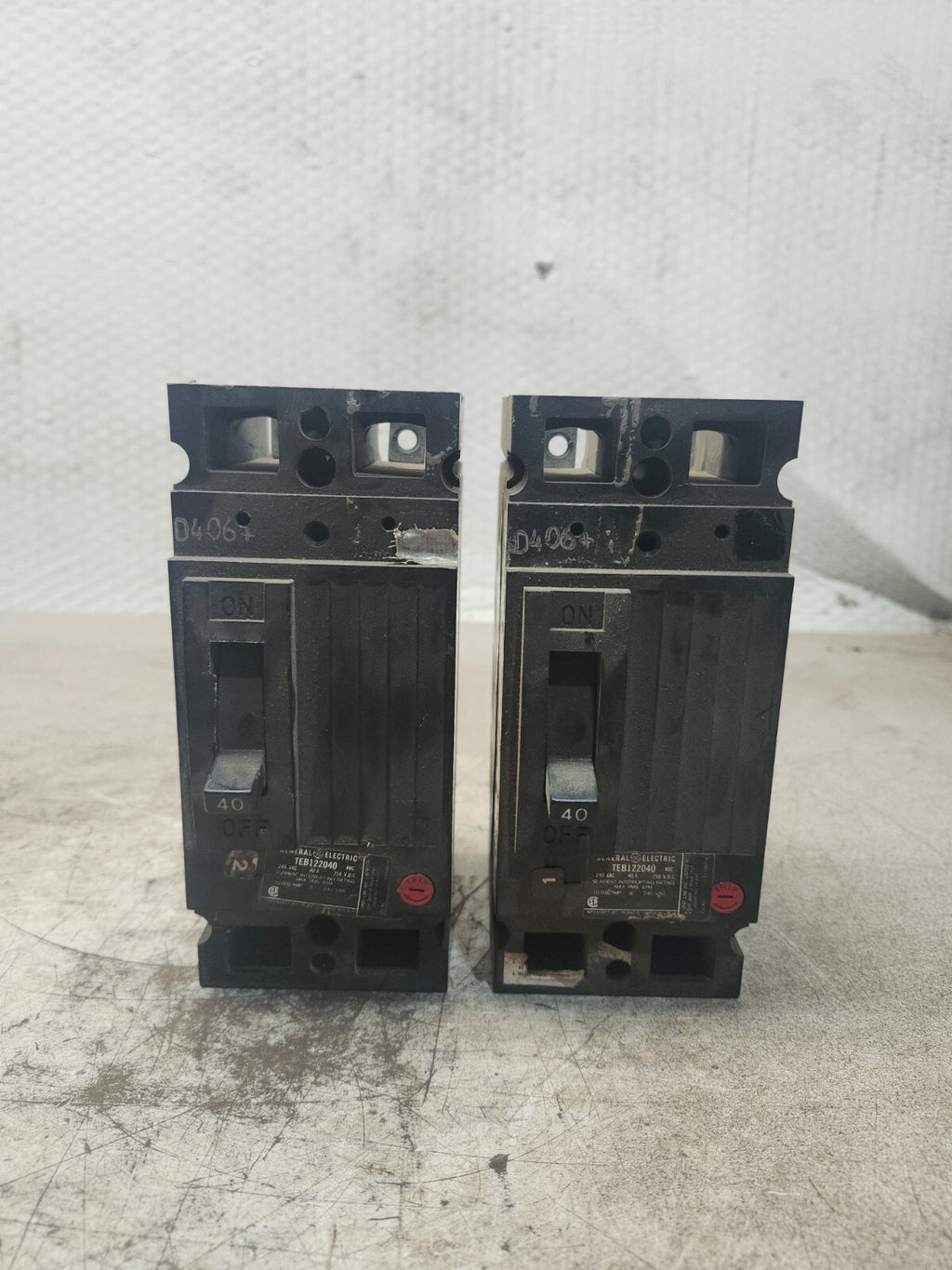USED LOT OF 2 GENERAL ELECTRIC CIRCUIT BREAKER 240VAC, 40A, 2POLE, 40C,TEB122040