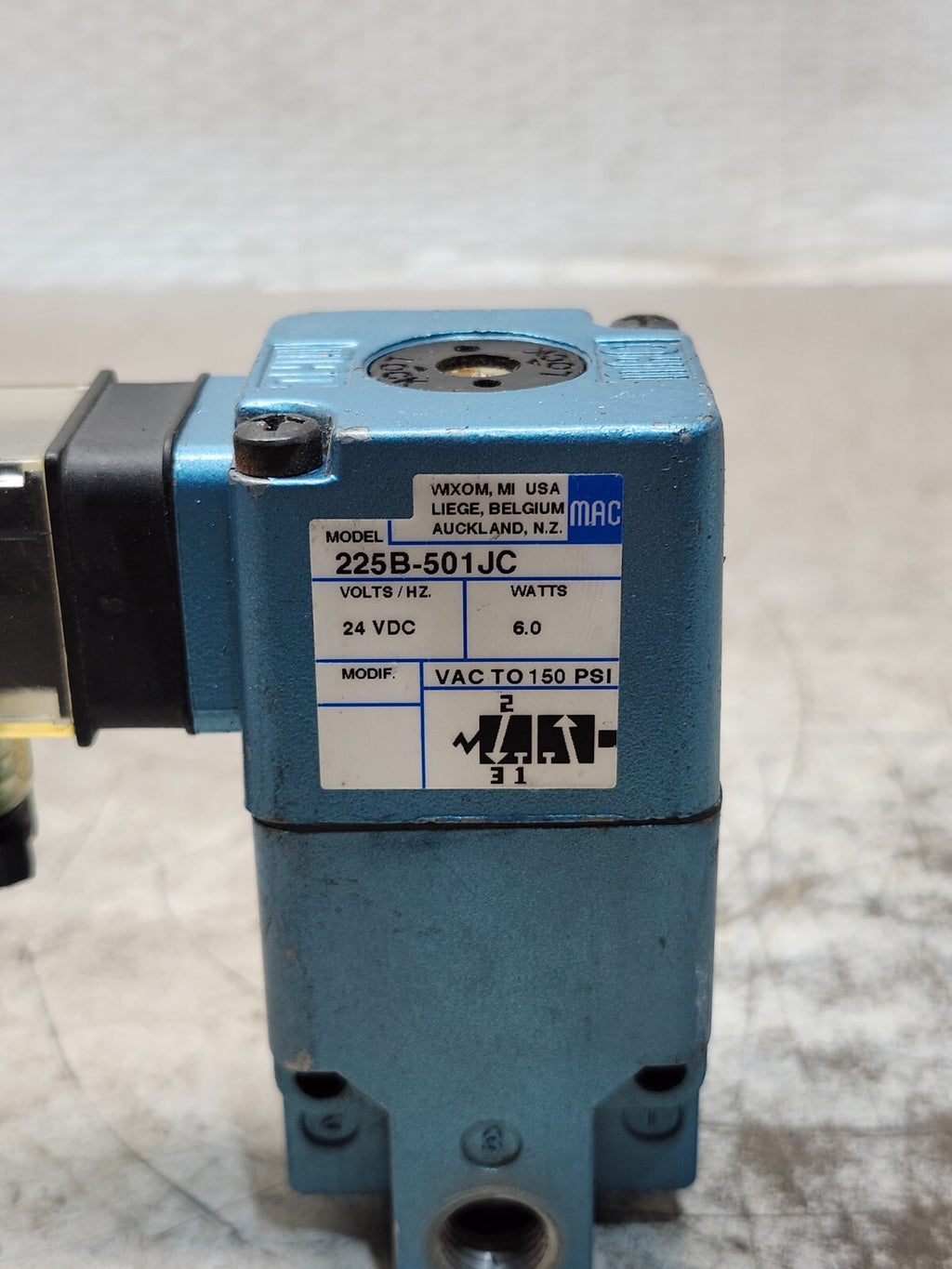 USED MAC SOLENOID VALVE 24V 6.0W 150PSI 225B-501JC