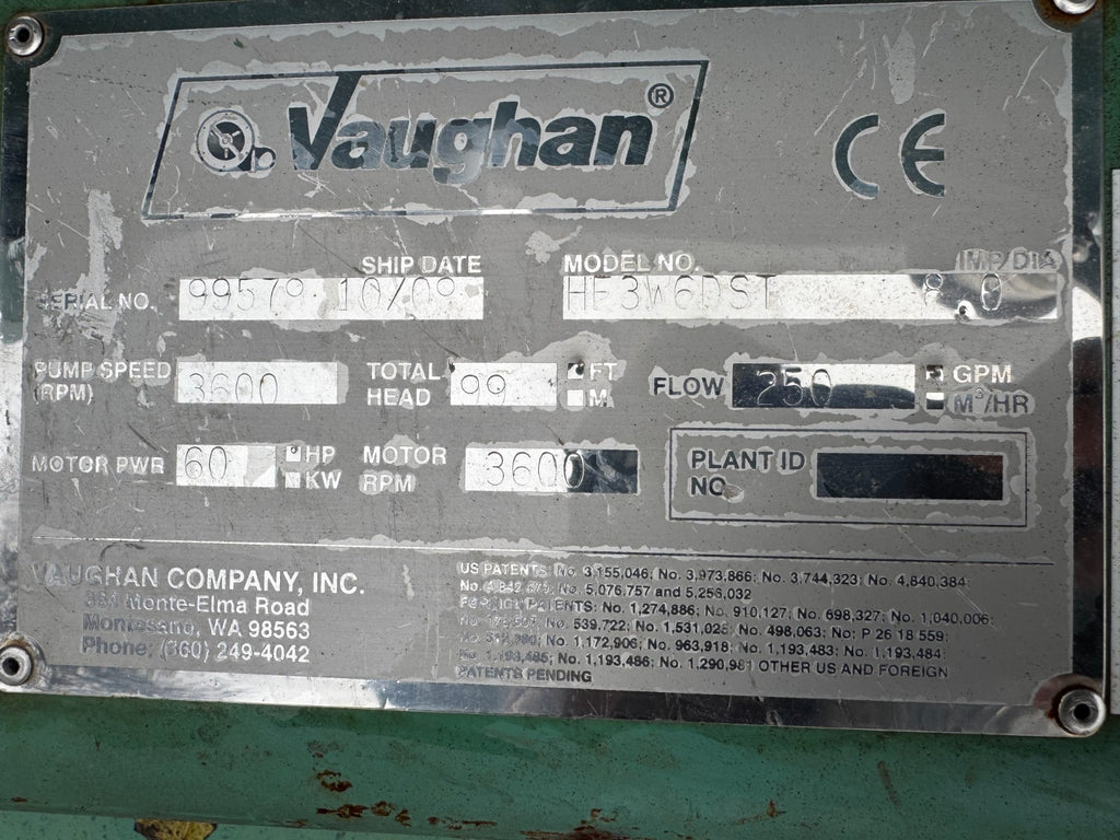 VAUGHAN CHOPPER PUMP 8" IMPELLAR HF3W6DST WITH 60HP BALDOR MOTOR